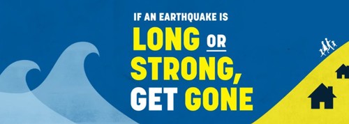 If you live near the coast or inside a tsunami evacuation zone (see the link above to the tsunami maps) you need to have a plan in place. If you feel a big earthquake that is long (goes for a minute or longer) or strong (it’s hard to stand up), or a weak, rolling earthquake shaking for a minute or more, you should self-evacuate. Go immediately to higher ground or as far inland as possible as soon as the shaking stops. If you live outside the tsunami evacuation zone you don’t need to move.